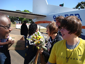 Today we are leaving the capitol of Zambia.. Lusaka.. And flying a small plane to Solwezi.. The closest big city to Musele.  In the airport today we were greeted by a huge fan.. Mr Vivian Saws, Who sees us on the Gaither shows here in Africa!  So cool! He recognized us and was so excited to meet us!  He wants us to come to Zambia to sing.. Go God!